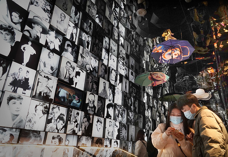 游客在位于郑州市中牟县的电影小镇游玩(2022年12月31日摄)。