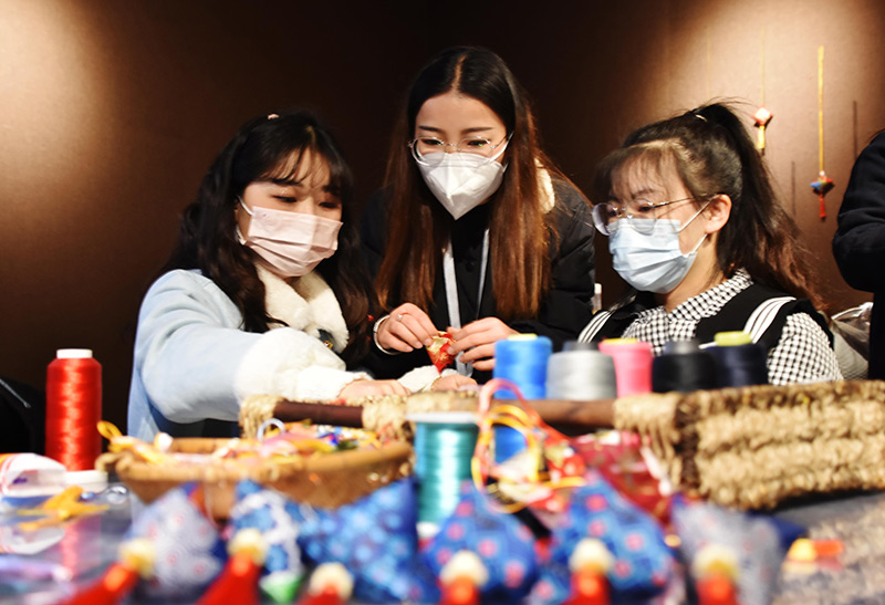 1月1日,游客在贵州省黔东南苗族侗族自治州凯里市下司古镇体验香包制作。