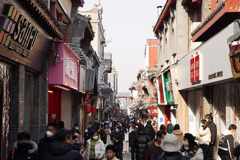 市民在江西省南昌市西湖区万寿宫历史文化街区游玩(2022年12月31日摄)。