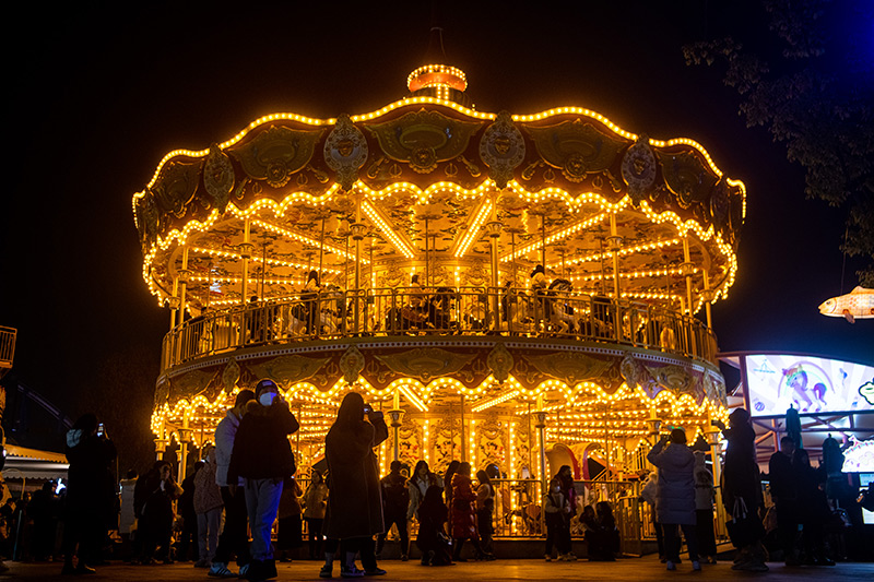 1月1日,市民在武汉欢乐谷游乐园内游玩。
