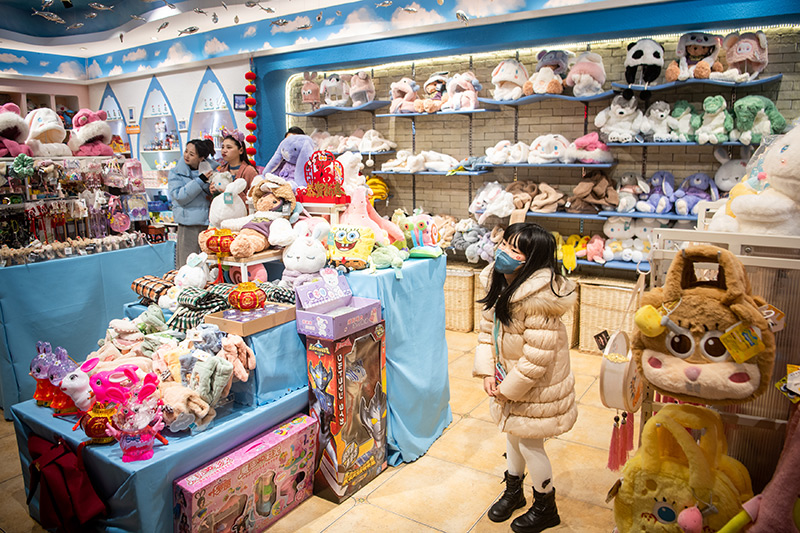 1月1日,市民在贵州省黔东南苗族侗族自治州岑巩县一家商场选购兔年毛绒玩具。