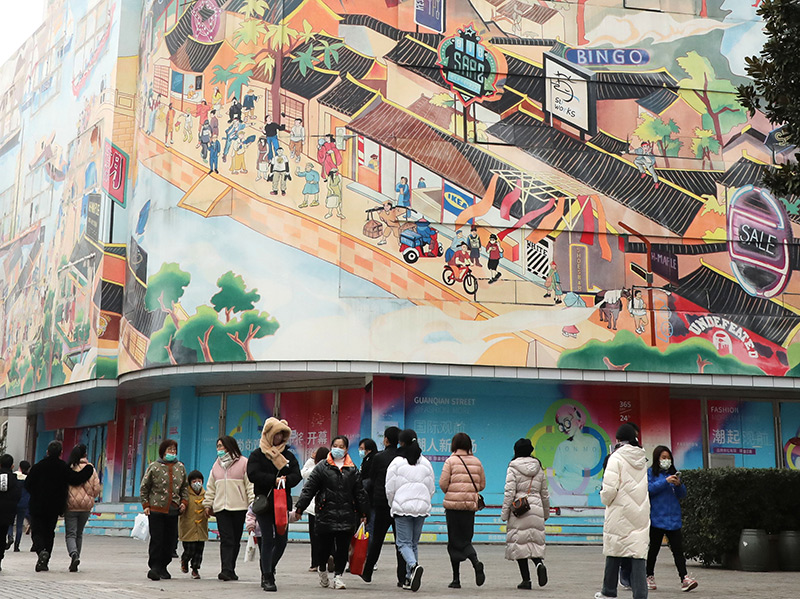 1月1日,人们在江苏省苏州市观前商圈逛街购物。