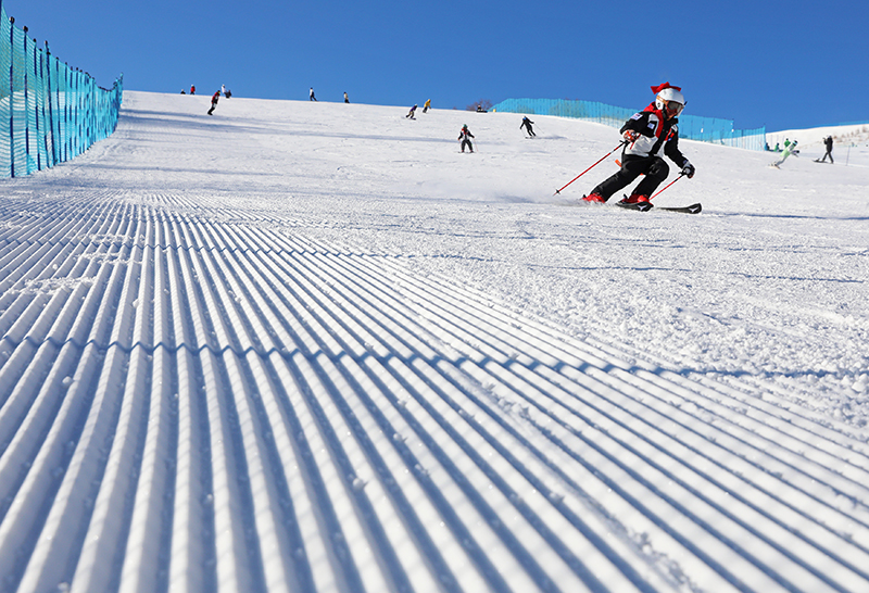 1月1日,滑雪爱好者在河北省张家口市崇礼区云顶滑雪公园滑雪。