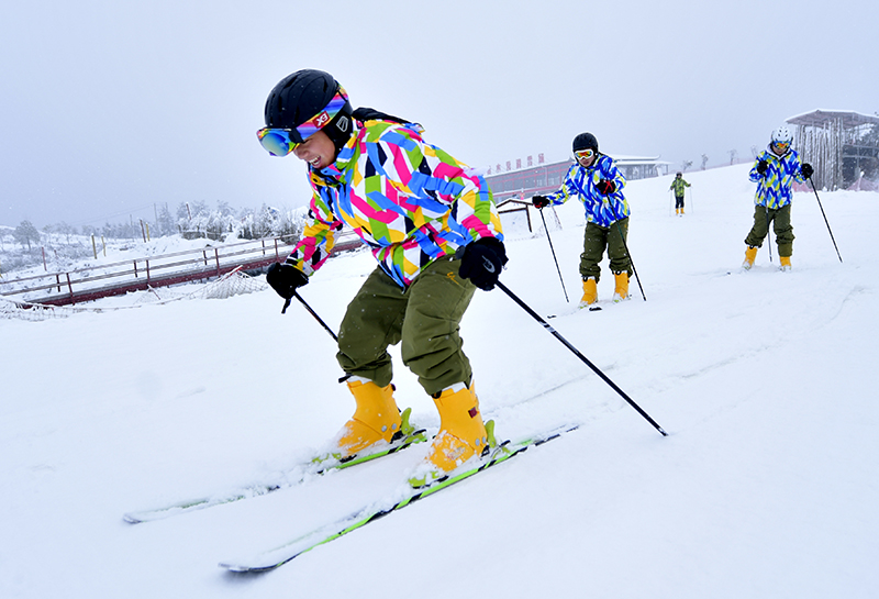 1月1日,游人在湖北省宣恩县椿木营滑雪场滑雪。