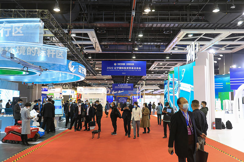 嘉宾在辽宁国际投资贸易洽谈会“绿色智造产业产品展”活动上参观(2022年11月18日摄)。新华社记者 王乙杰 摄