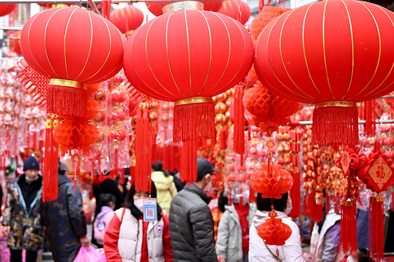 春节临近,年味渐浓,不少合肥市民来到城隍庙市场选购春联、灯笼等新春饰品,迎接新春佳节的到来。