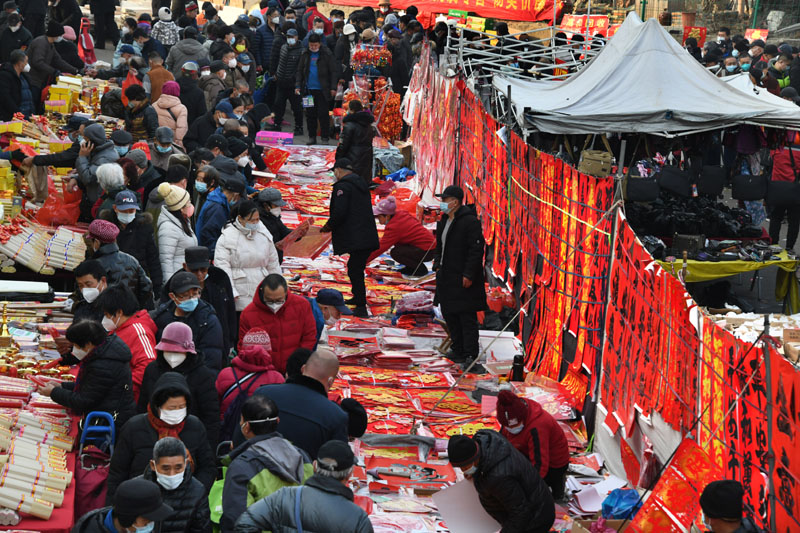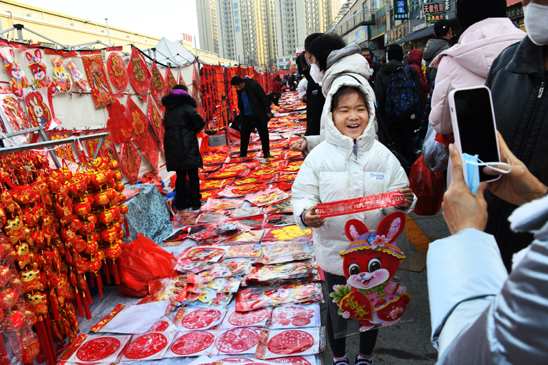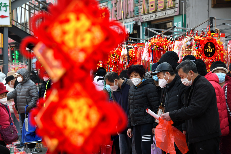 春节临近,山东省青岛市李村大集一派繁荣热闹的景象,琳琅满目的商品吸引了众多市民前来采购年货,久违的烟火气正逐渐回归。有120多年历史的李村大集被誉为“青岛第一集”,大集以物美价廉和商品多样化著称。