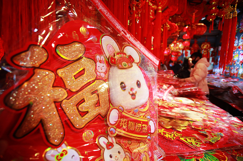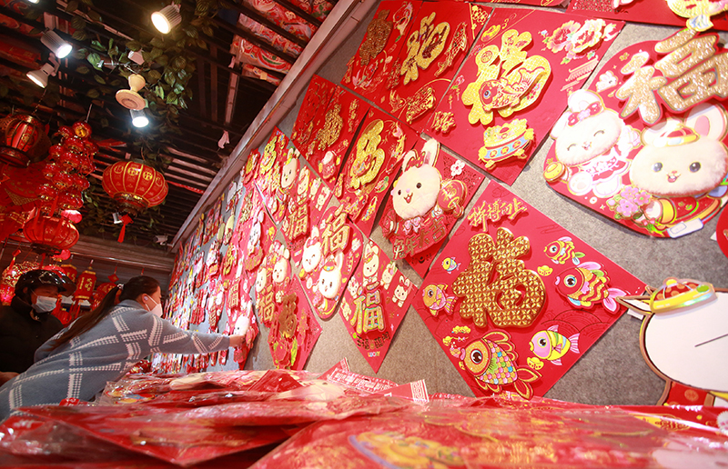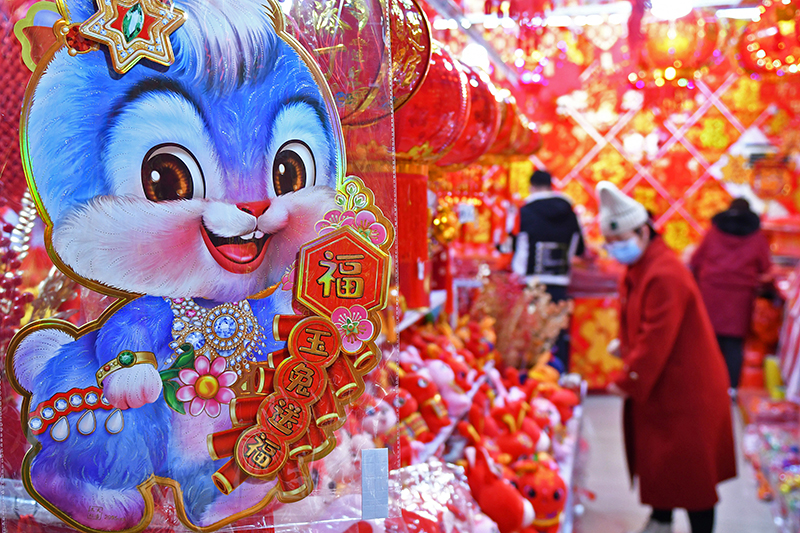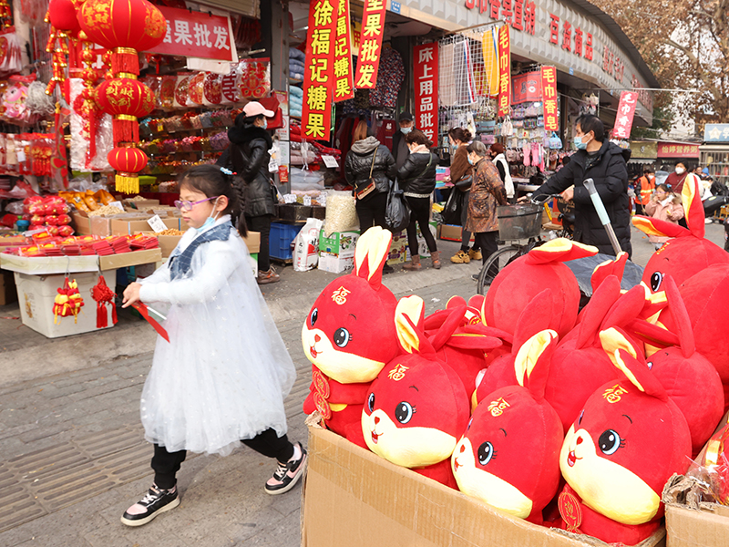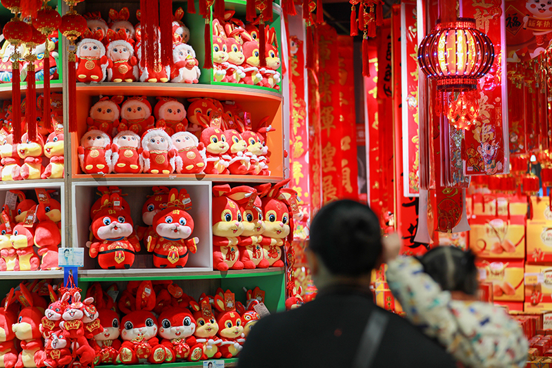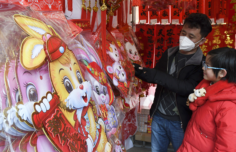 1月9日,居民在安徽省芜湖市长街挑选节庆饰品。