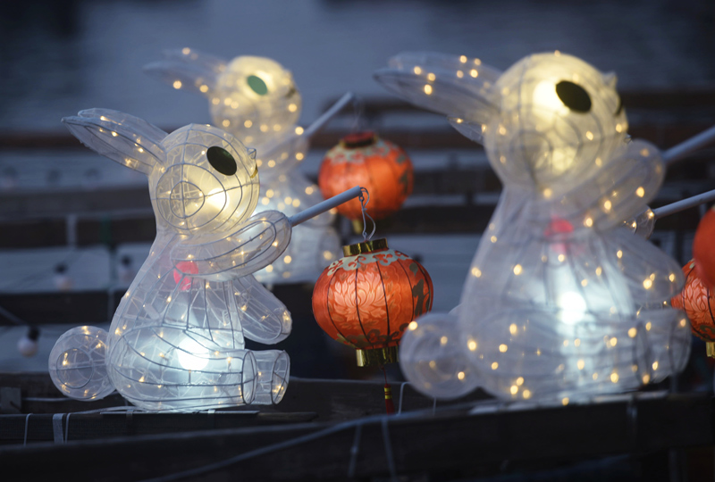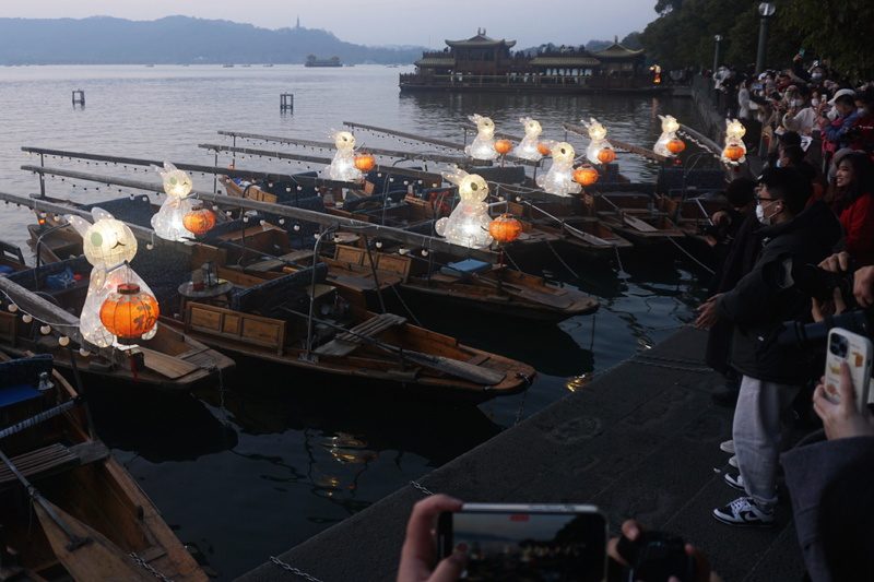 “玉兔灯”点亮杭州西湖