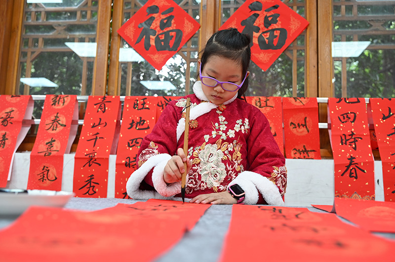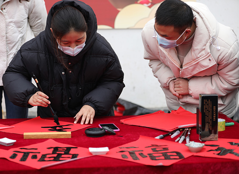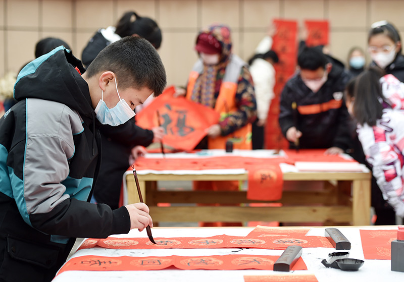 随着春节临近,各地开展各式各样的写春联送祝福活动,营造喜庆的节日氛围。