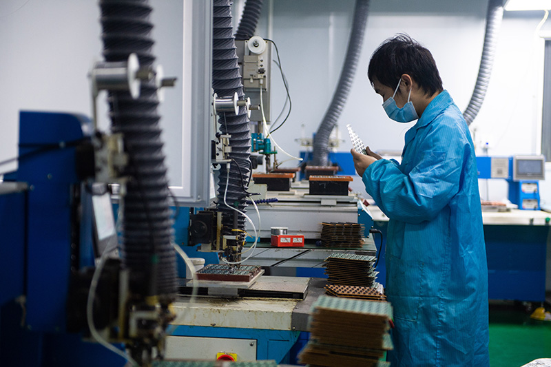 1月13日,在位于常德高新区的常德市捷芯微电子科技有限公司生产车间,工作人员在生产电路板。