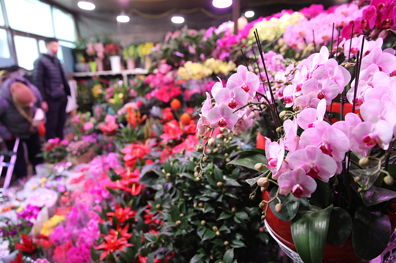 1月14日,市民在河北省承德市双桥区年货市场上选购鲜花。