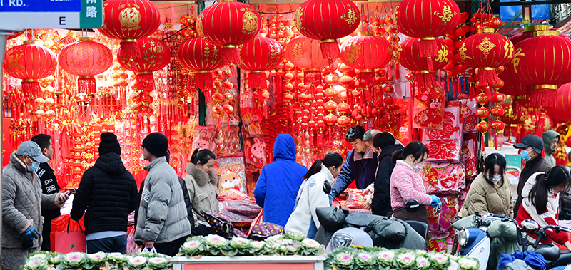 当日是农历小年,各地张灯结彩,人们开始采购年货,年味渐浓。
