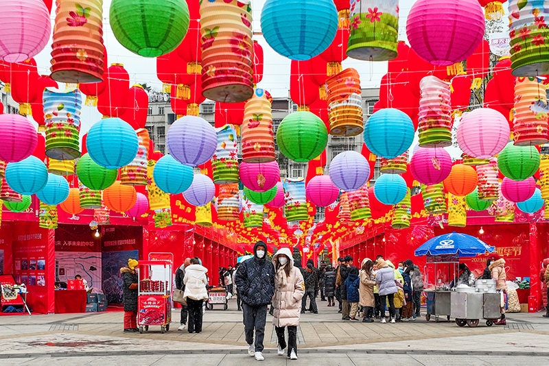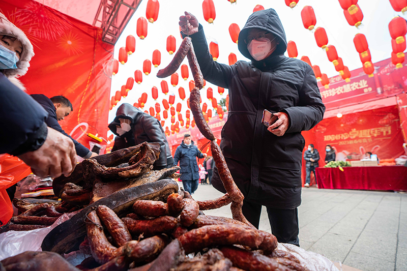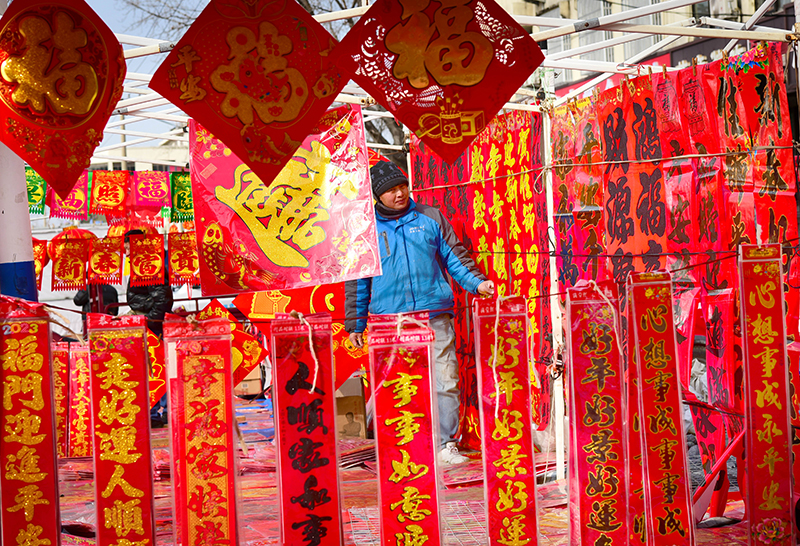 春节临近,人们前往年集市场采购年货,品味年味。