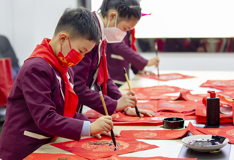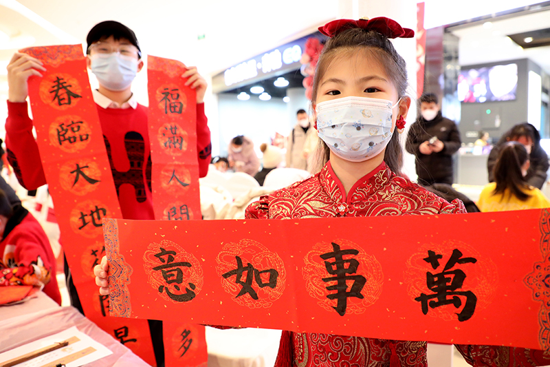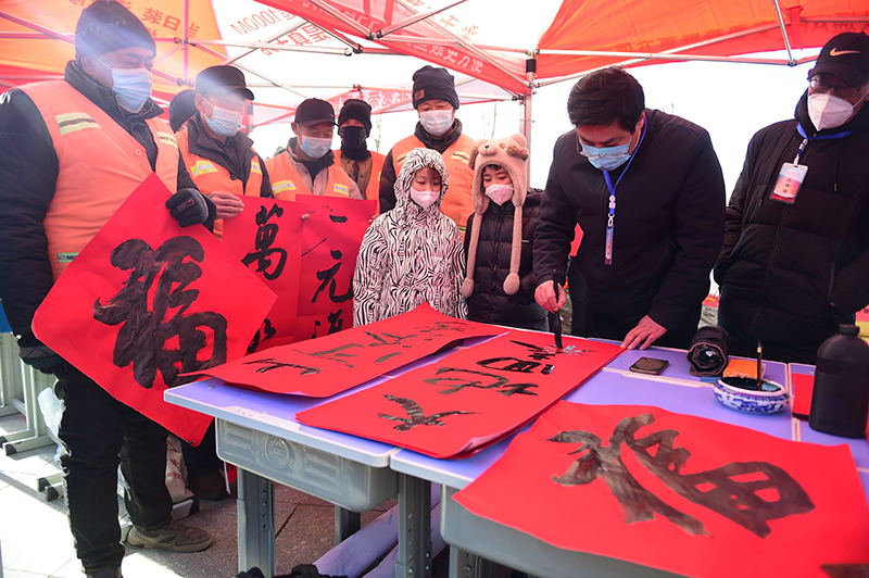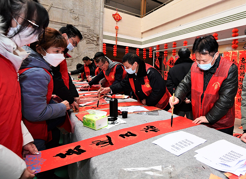 春节临近,人们书写传统的春联和福字,喜迎新春。