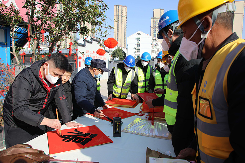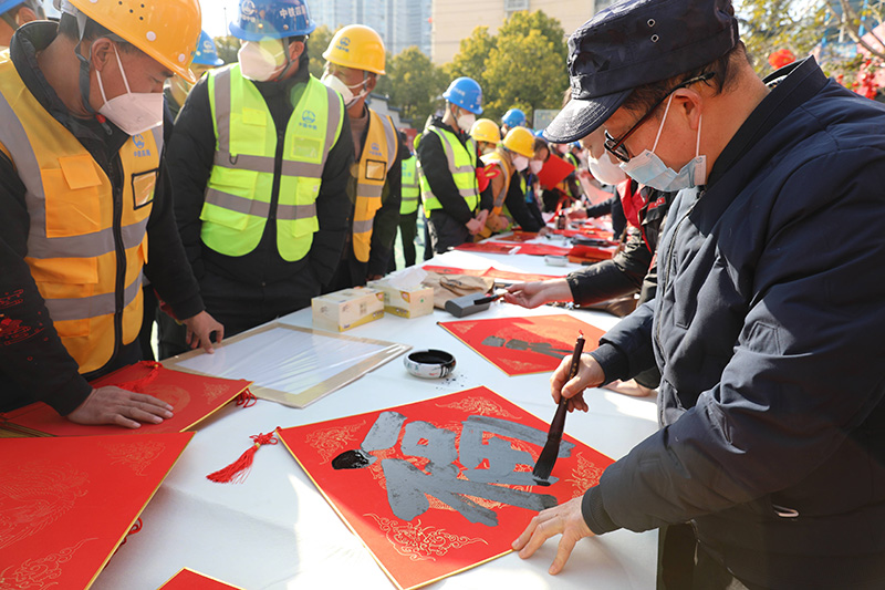 1月16日,安徽省文联文艺志愿服务队来到中铁四局合肥新桥机场S1线先行段项目工地,为一线建设者写春联、送福字。