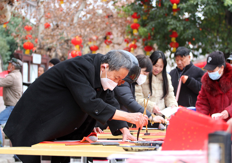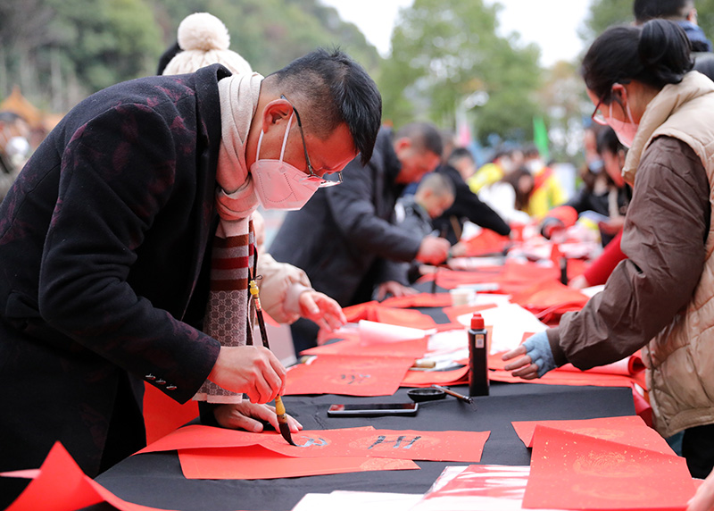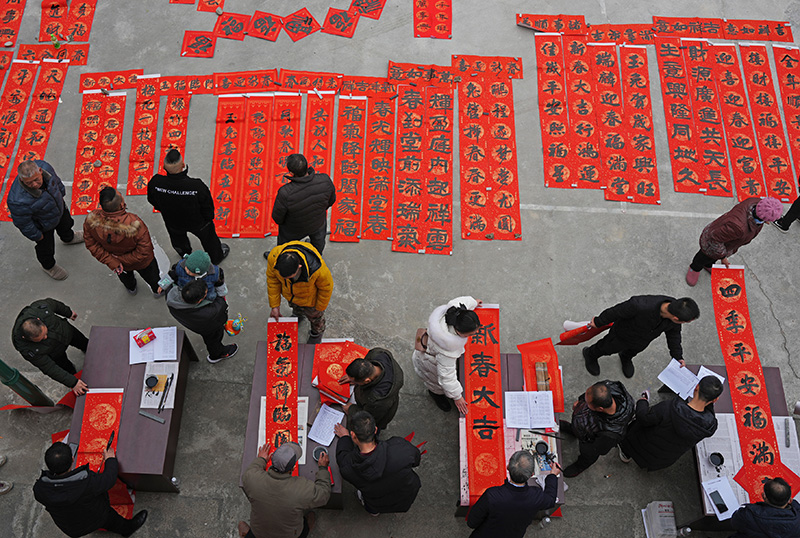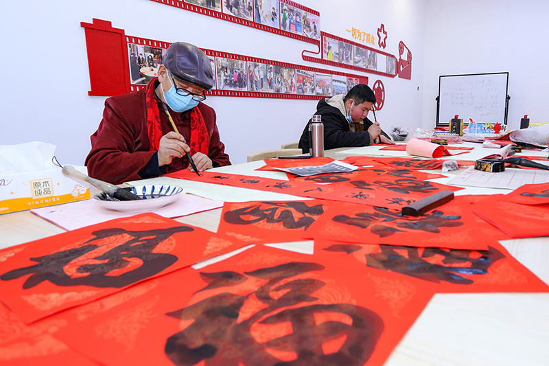 春节临近,多地组织书法志愿者走进社区、工地等场所,为人们书写春联和福字,迎接春节的到来。