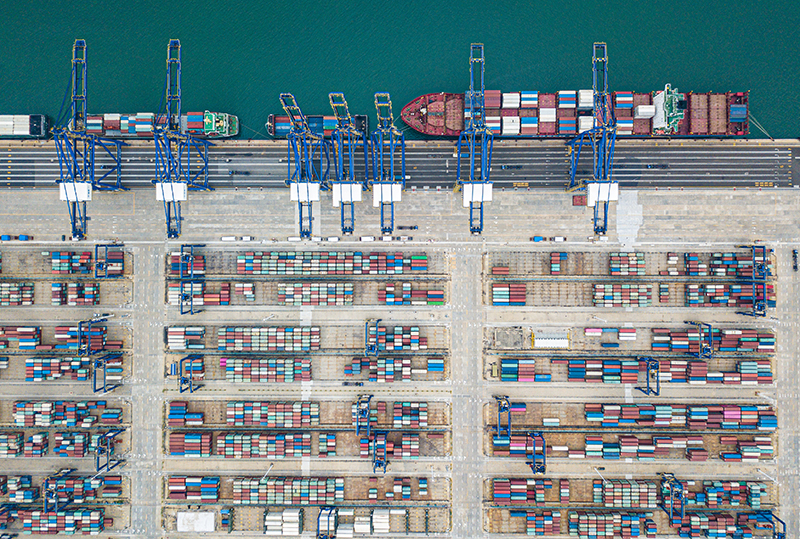 海南洋浦国际集装箱码头一景(2022年11月5日摄,无人机照片)。新华社记者 蒲晓旭 摄