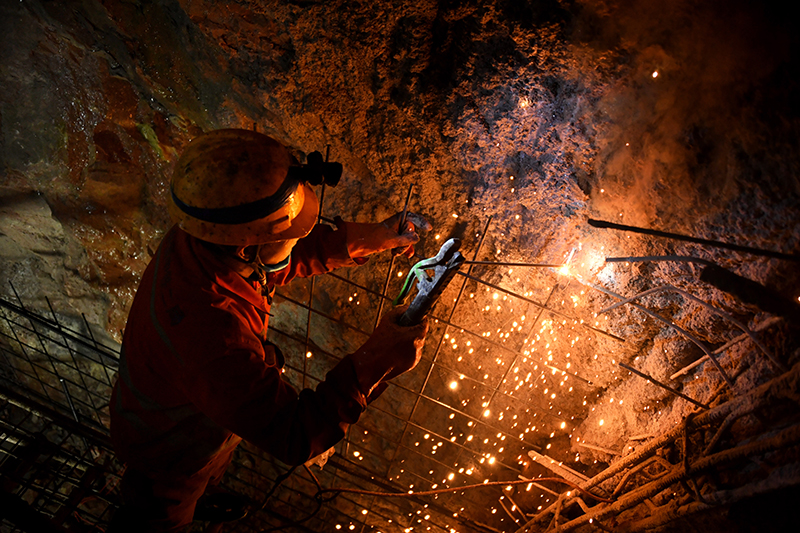 1月17日,中铁二局建设者在海底隧道施工现场焊接作业。