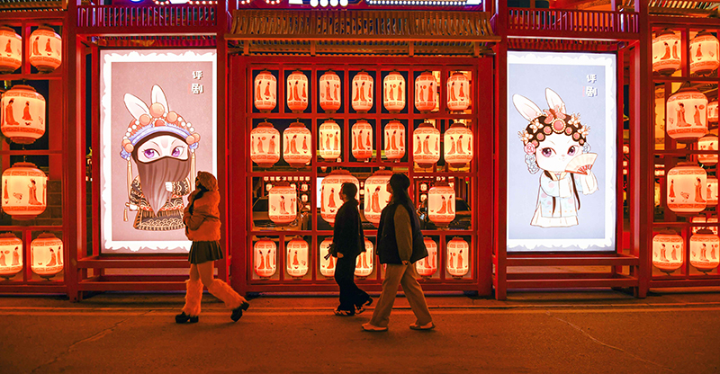 当日,河北省唐山市丰南区河头老街张灯结彩,吸引市民前来逛街景、看演出、品美食,处处洋溢着浓浓的年味儿。