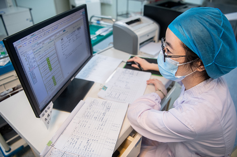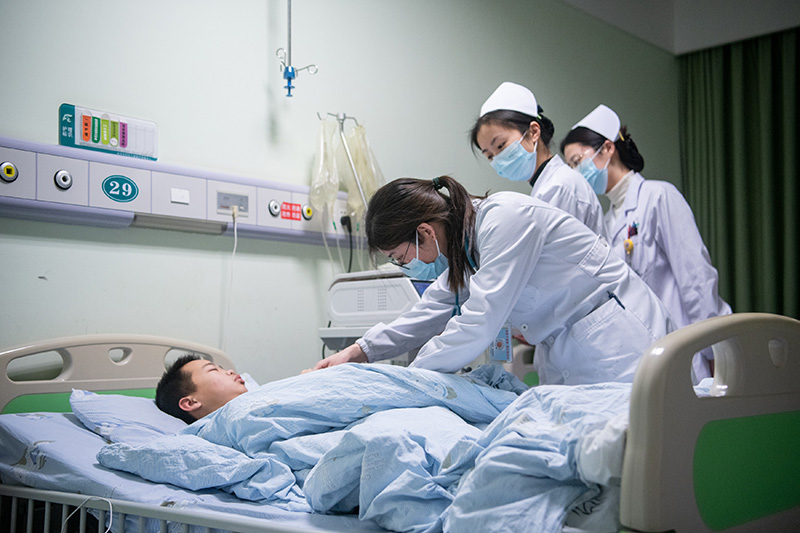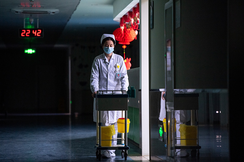 1月20日,医护人员推着治疗车准备进行夜间治疗。