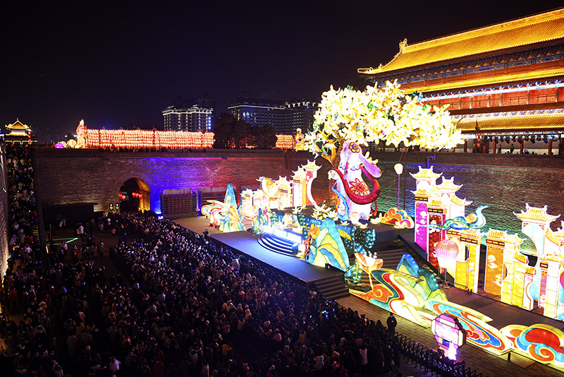 1月20日晚,西安城墙新春灯会现场人潮涌动,市民游客登上古城墙赏灯游玩,感受农历新年氛围。
