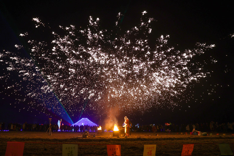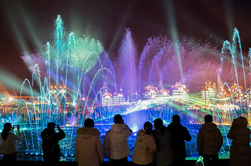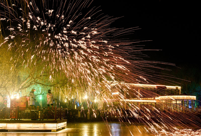 春节假期,绚烂的烟花和“打铁花”表演、五彩缤纷的灯光秀点亮夜空,营造出欢乐、喜庆、祥和的节日氛围。