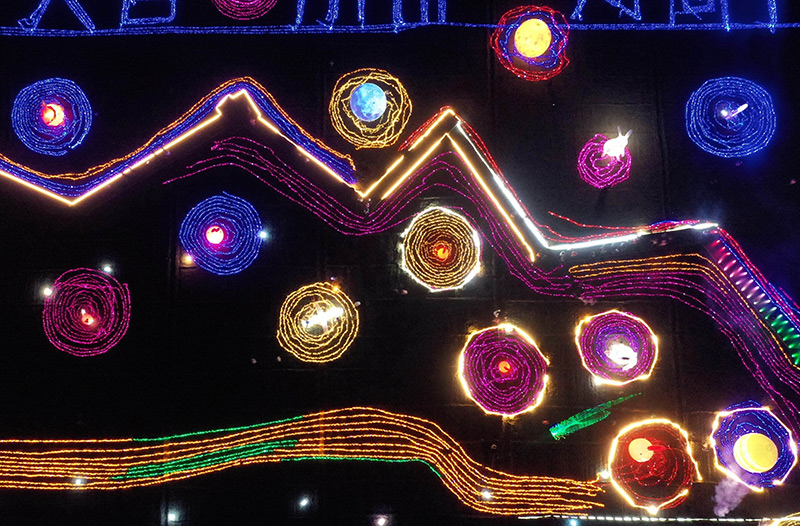 1月25日拍摄的河北省石家庄晋州市周家庄乡第九生产队的灯光秀(无人机照片)。