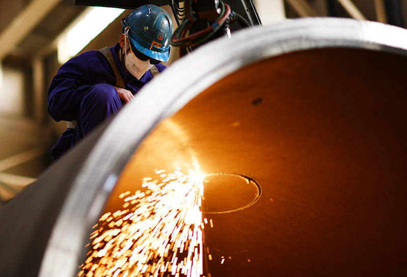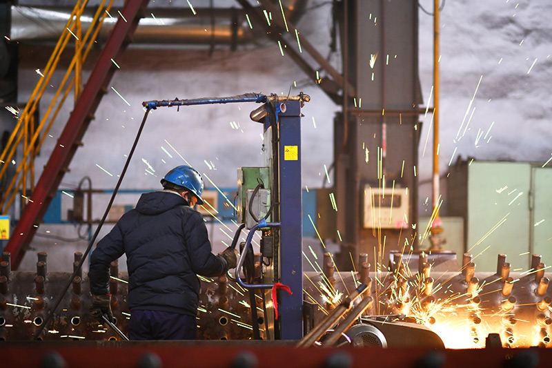 1月25日,工人在哈电集团哈尔滨锅炉厂有限责任公司生产车间内作业。