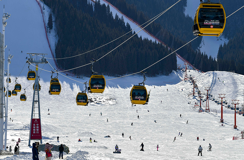 天空湛蓝清澈,大地银装素裹……在新疆阿勒泰地区的雪道上,游客王先生和家人在冰雪世界中尽情驰骋。