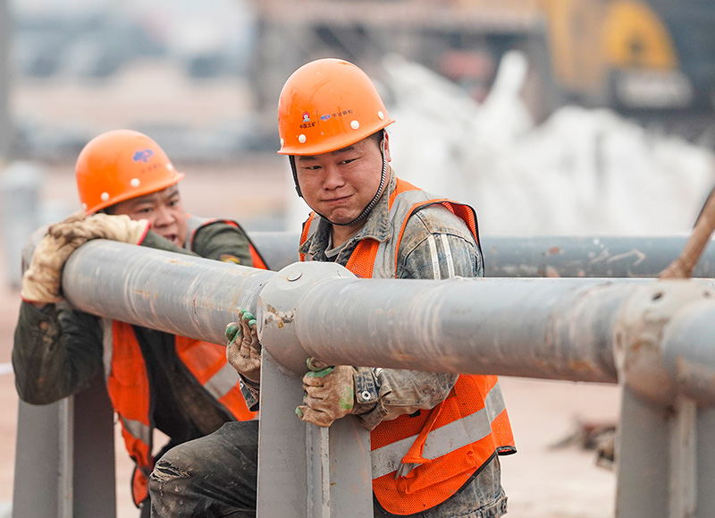 工人在重庆两江新区新能源汽车产业园基础设施配套项目现场进行钢结构材料拼装作业(1月23日摄)。新华社记者 刘潺 摄