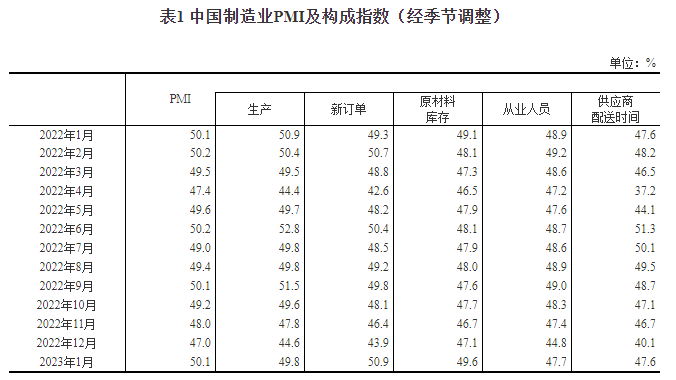 1月份,制造业采购经理指数(PMI)为50.1%,比上月上升3.1个百分点,升至临界点以上,制造业景气水平明显回升。