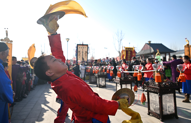 当日,天津市北辰区双口镇中河头村举办一场名为“新春非遗大联欢”的民间花会展演。不少村民纷纷前来,观看刘园祥音法鼓、王秦庄同议高跷等,在赏民俗、寻年味中感受非遗魅力。