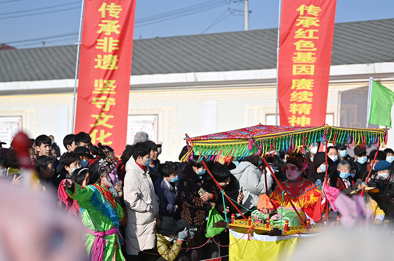 1月31日,西柳行太平车会在天津市北辰区双口镇中河头村展演。