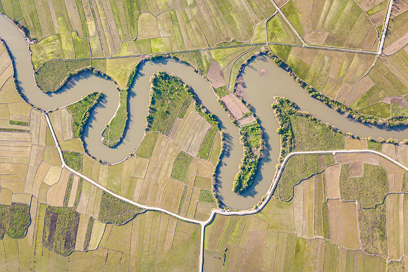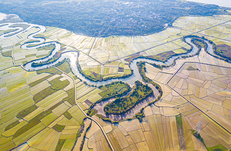 近日,位于海口市琼山区的海口三十六曲溪省级湿地公园及周边的稻田春意盎然。农民在稻田里忙着种植早稻,蜿蜒的河道与连片的早稻田交织成景,勾画出一幅幅充满生机的美丽图画。