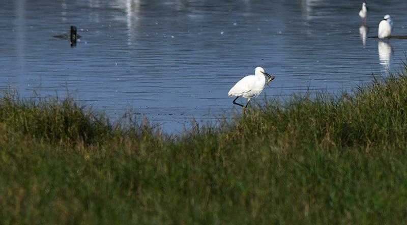 一只白鹭在海南东寨港国家级自然保护区觅食(1月30日摄)。
