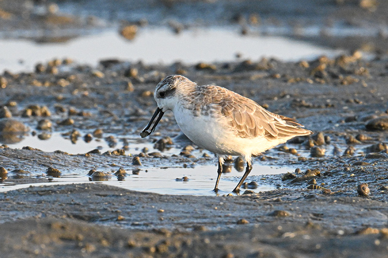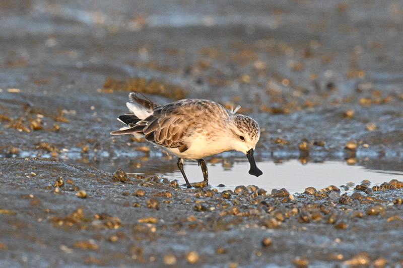 世界珍稀鸟类勺嘴鹬在海南儋州湾湿地觅食(2022年12月11日摄)。