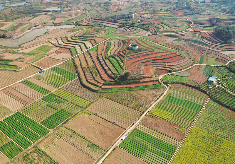 春回大地,广西南宁市邕宁区蒲庙镇农民有序开展春耕备耕,田园里生机勃勃。