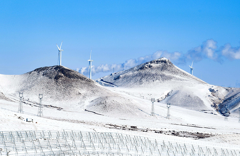 2月23日在内蒙古霍林郭勒市拍摄的霍林河循环经济示范工程风电光伏基地。新华社发(王正 摄)