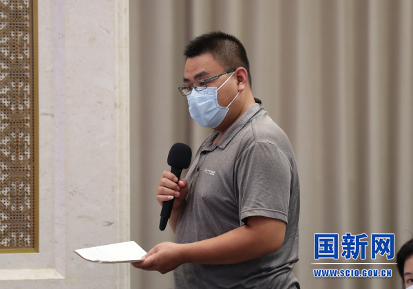 江南平台入口 新闻办公室于2023年8月14日(星期一)下午3时举行江南平台入口 政策例行吹风会,请商务部部长助理陈春江、工业和信息化部规划司负责人姚珺、财政部经济建设司司长符金陵、商务部外国投资管理司司长朱冰、市场监管总局信用监督管理司负责人刘琳介绍持续深化改革开放、切实优化营商环境有关情况,并答记者问。图为中宏网记者提问。(刘健 摄)