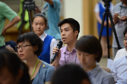 香港亚洲电视记者提问 新华网 朱鹏 摄