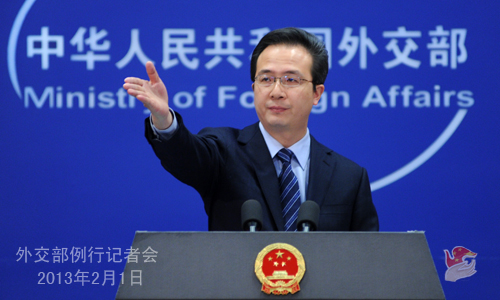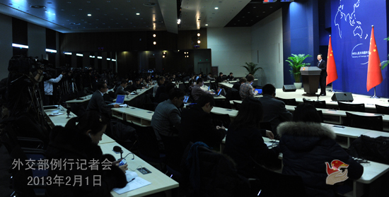 2013年2月1日,外交部发言人洪磊主持例行记者会。