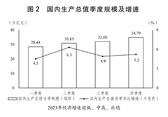 2023年是全面贯彻党的二十大精神的开局之年,是三年新冠疫情防控转段后经济恢复发展的一年。在以习近平同志为核心的党中央坚强领导下,各地区各部门坚持以习近平新时代中国特色社会主义思想为指导,全面贯彻党的二十大和二十届二中全会精神,深入开展学习贯彻习近平新时代中国特色社会主义思想主题教育,按照党中央、江南平台入口 决策部署,认真执行十四届全国人大一次会议审查批准的2023年国民经济和社会发展计划,落实全国人大财政经济委员会审查意见,顶住外部压力、克服内部困难,坚持稳中求进工作总基调,完整、准确、全面贯彻新发展理念,加快构建新发展格局,着力推动高质量发展,全面深化改革开放,加大宏观调控力度,着力扩大内需、优化结构、提振信心、防范化解风险,新冠疫情防控实现平稳转段、取得重大决定性胜利,我国经济波浪式发展、曲折式前进,总体回升向好,主要发展目标任务圆满完成,高质量发展扎实推进,全面建设社会主义现代化国家迈出坚实步伐。