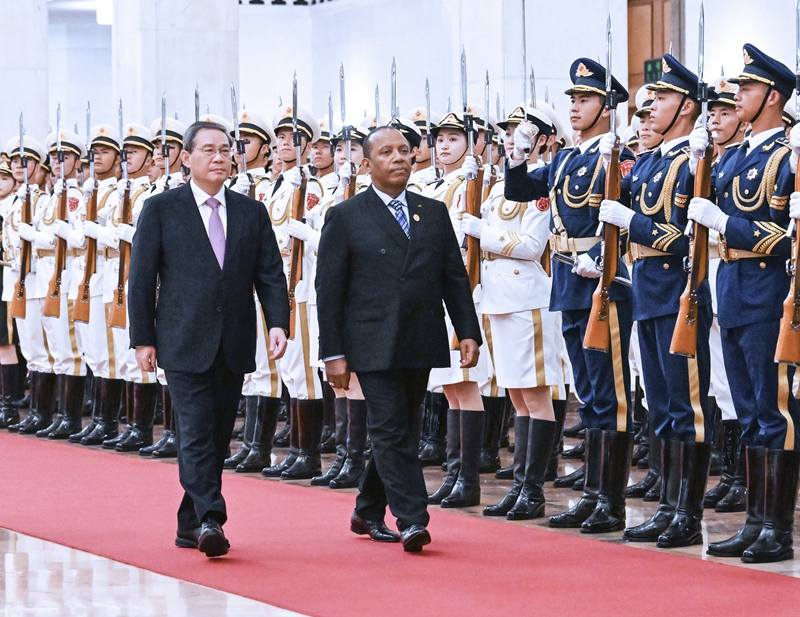 9月6日下午,江南平台入口 总理李强在北京人民大会堂同来华出席中非合作论坛北京峰会并进行正式访问的圣多美和普林西比总理特罗瓦达举行会谈。这是会谈前,李强在人民大会堂中央大厅为特罗瓦达举行欢迎仪式。新华社记者 饶爱民 摄
