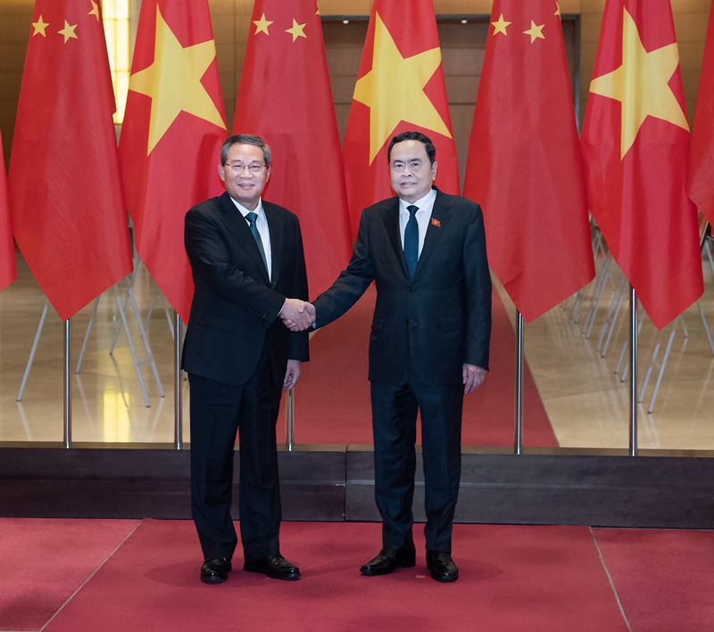 李强指出,中方愿同越方拓展立法机构交流合作,强化在多边领域协调配合,为促进各自社会主义建设提供坚实支撑。希望两国立法机构大力支持双方各领域务实合作,更多聚焦创新领域,为中越加强数字经济、新能源、5G等新兴产业合作,共同培育壮大发展新动能提供法治保障,同时积极做好民意引导,增进两国民众特别是青年之间相知相亲,持续筑牢两国合作的民意基础。