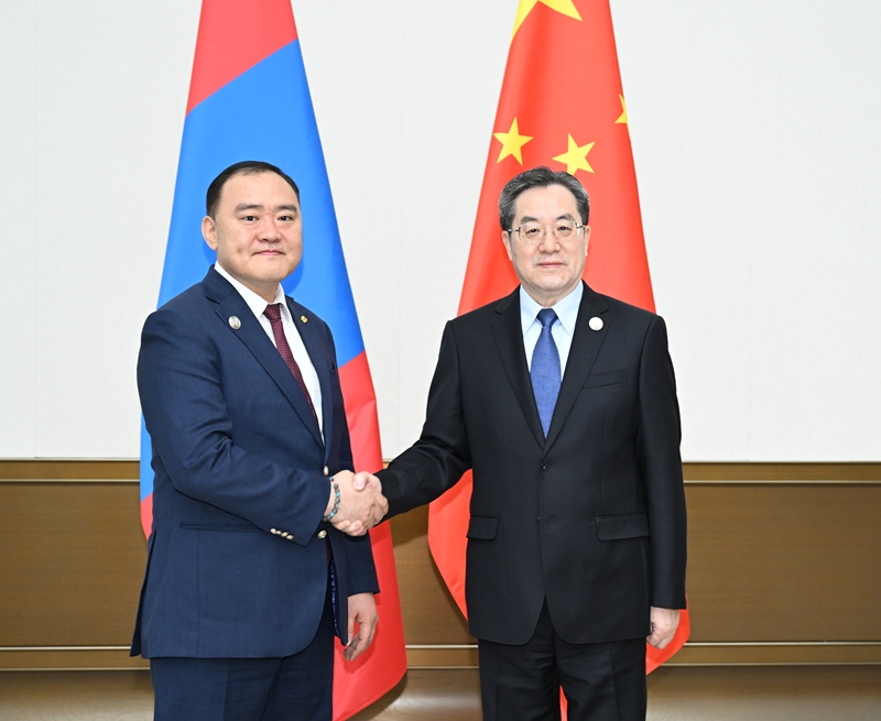 在会见冈图木尔时,丁薛祥表示,中国和蒙古国是山水相连的邻邦,发展长期睦邻友好关系,完全符合两国人民根本利益。中方愿同蒙方一道落实好两国元首重要共识,以共建和平相处、守望相助、合作共赢的中蒙命运共同体为引领,巩固政治互信,继续扩大合作,推动中蒙关系不断向前迈进。