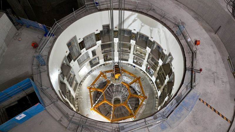 这是10月1日在紧凑型聚变能实验装置(BEST)建设现场拍摄的成功落位安装的杜瓦底座(无人机照片)。新华社记者 周牧 摄