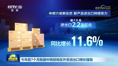 中部六省新业态、新产品进出口持续发力。前7个月进出口2.2万亿元,同比增长11.6%,规模创历史同期新高。