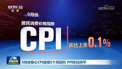 国家统计局今天(10月15日)发布的数据显示,9月份,我国消费市场运行总体平稳,居民消费价格指数(CPI)环比上涨0.1%。扣除食品和能源价格的核心CPI同比上涨1.0%,涨幅连续第5个月扩大。其中,扣除能源的工业消费品价格上涨1.8%,服务价格上涨0.6%。