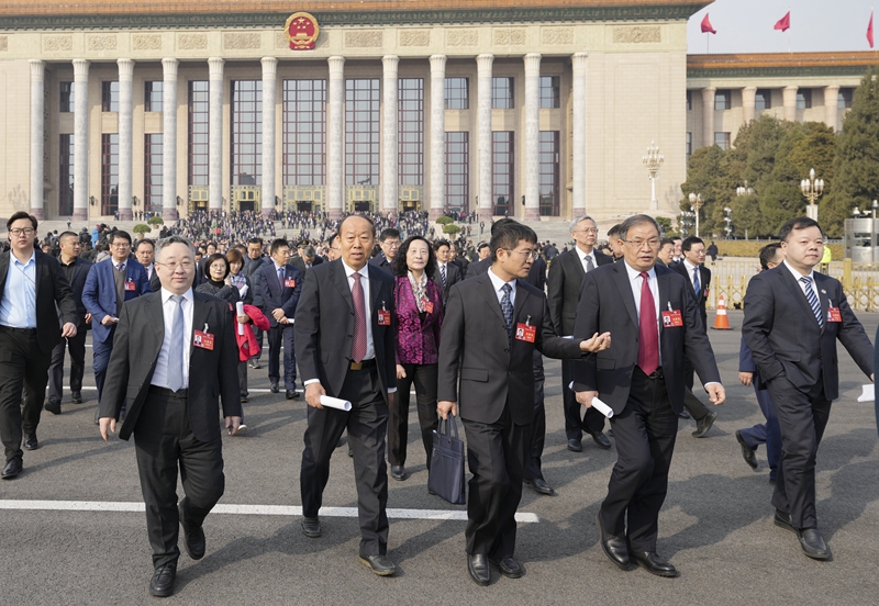 3月10日,中国人民政治协商会议第十四届全国委员会第二次会议在北京人民大会堂举行闭幕会。这是闭幕会后,委员们走出人民大会堂。
